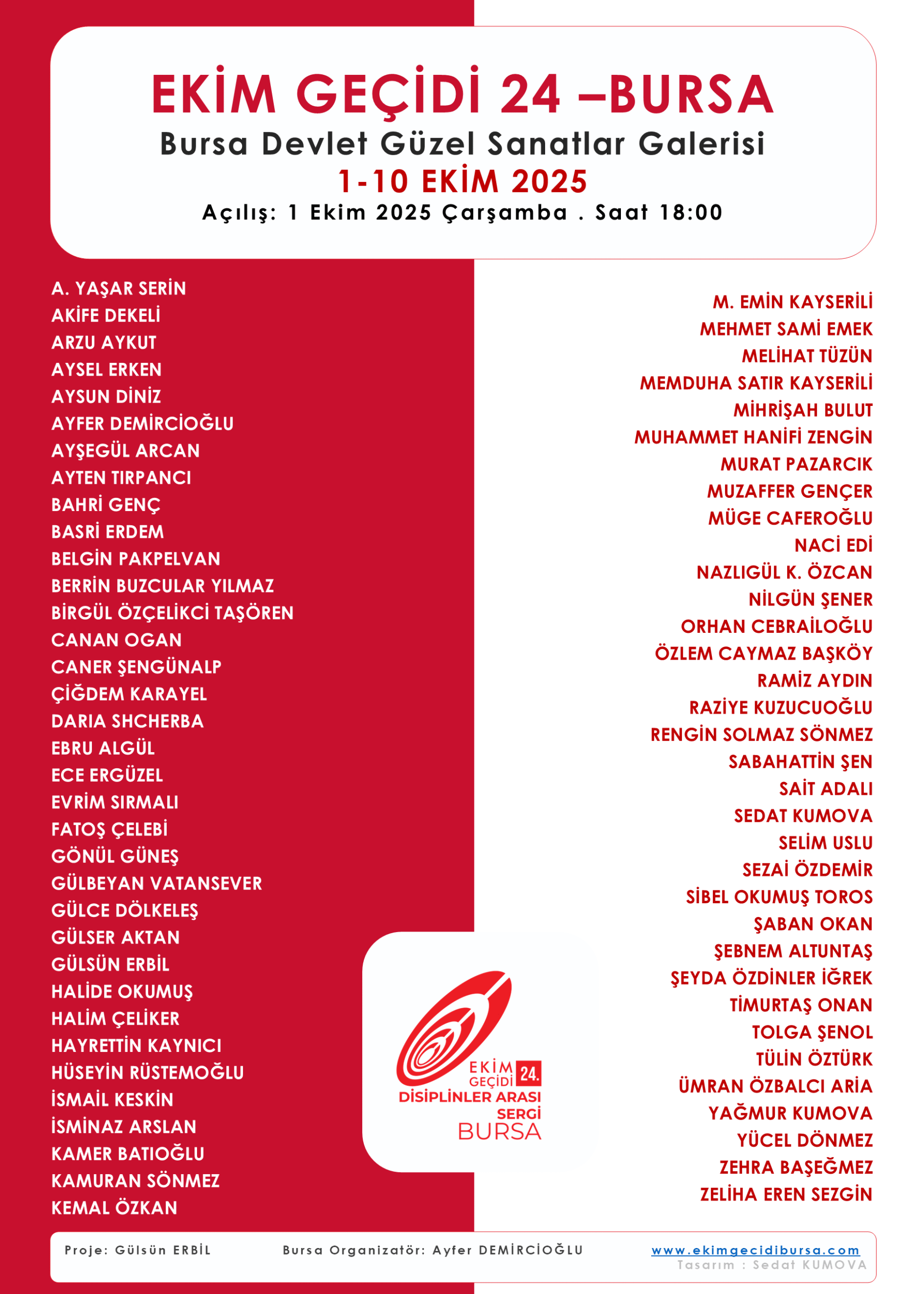 24. Ekim Geçidi 1 – 10 Ekim 2025 tarihleri arasında Bursa Devlet Güzel Sanatlar Galerisi’nde (Heykel)hayata geçirilecek.
