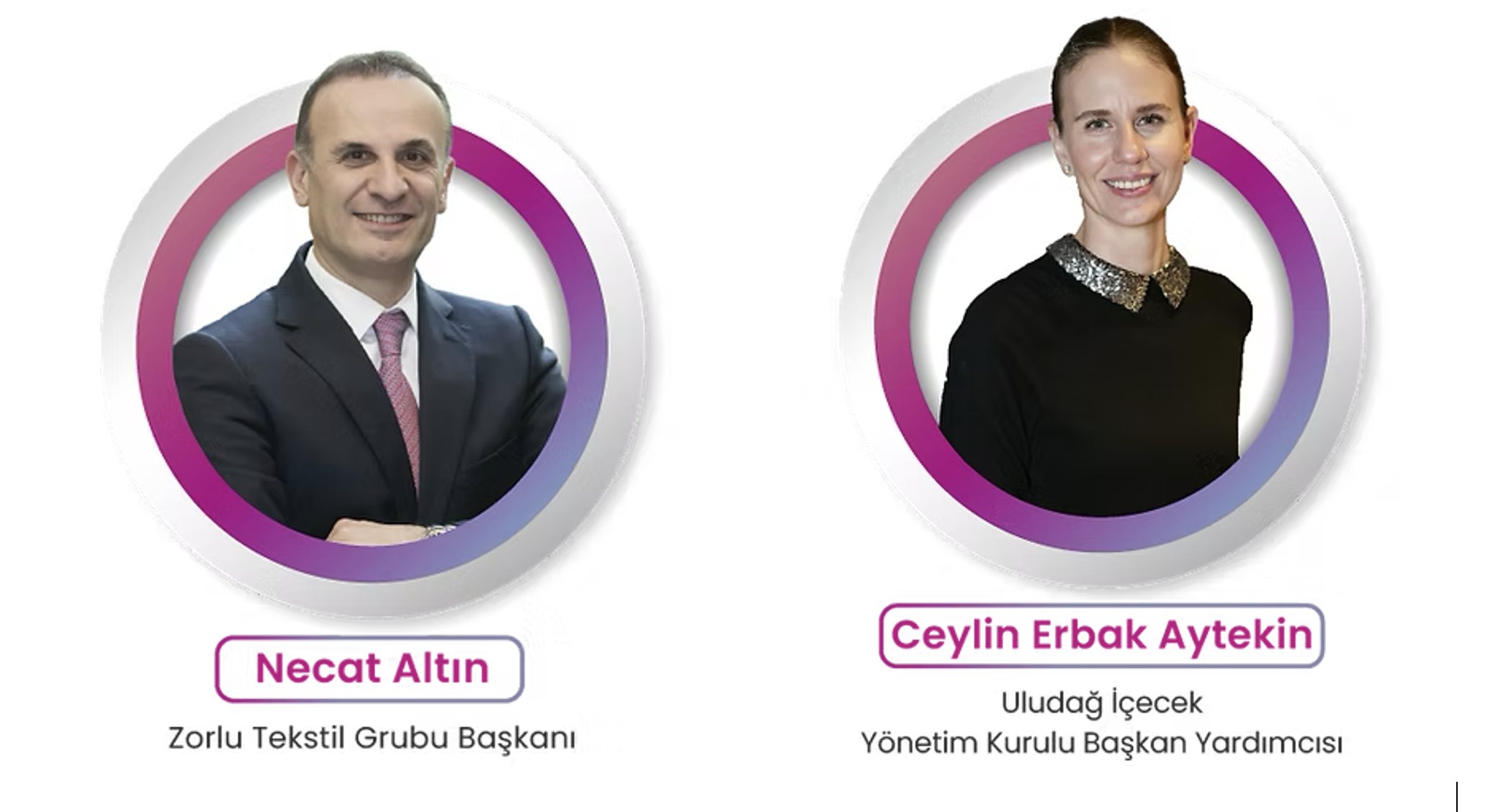 Ayrıca konuşmacılar arasından Bursa’dan da 2 isim var. Uludağ İçecek Yönetim Kurulu Başkan Yardımcısı Ceylin Erbak Aytekin ve Zorlu Holding Tekstil Grubu Başkanı Necat Altın.