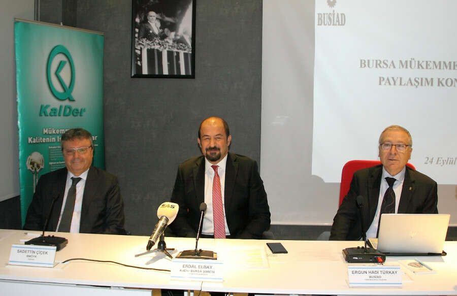 Bursa Mükemmellik Ödülü’nde 2019 yılı çalışmaları salı günü yapılan basın toplantısı ve ardından gerçekleştirilen konferans ile başladı. KalDer Evi’nde gerçekleştirilen etkinlikte BUSİAD Yönetim Kurulu Başkanı Ergun Hadi Türkay, KalDer Bursa Şubesi Yönetim Kurulu Başkanı Erdal Elbay, Bursa Mükemmellik Ödülü Yürütme Kurulu (BMÖYK) Başkanı Sadettin Çiçek ve Bursa Mükemmellik Ödülü’nü almaya hak kazanan kurum ve kuruluşların temsilcileri vardı .