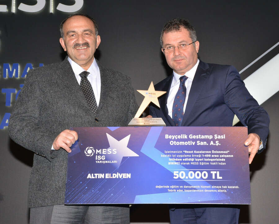 Ödülü Çalışma ve Sosyal Hizmetler Bakanlığı İş Sağlığı ve Güvenliği Genel Müdürü Cafer Uzunkaya verdi. Ödülü alan Beyçelik Gestamp Genel Müdürü Engin Meydan, şunları söyledi: