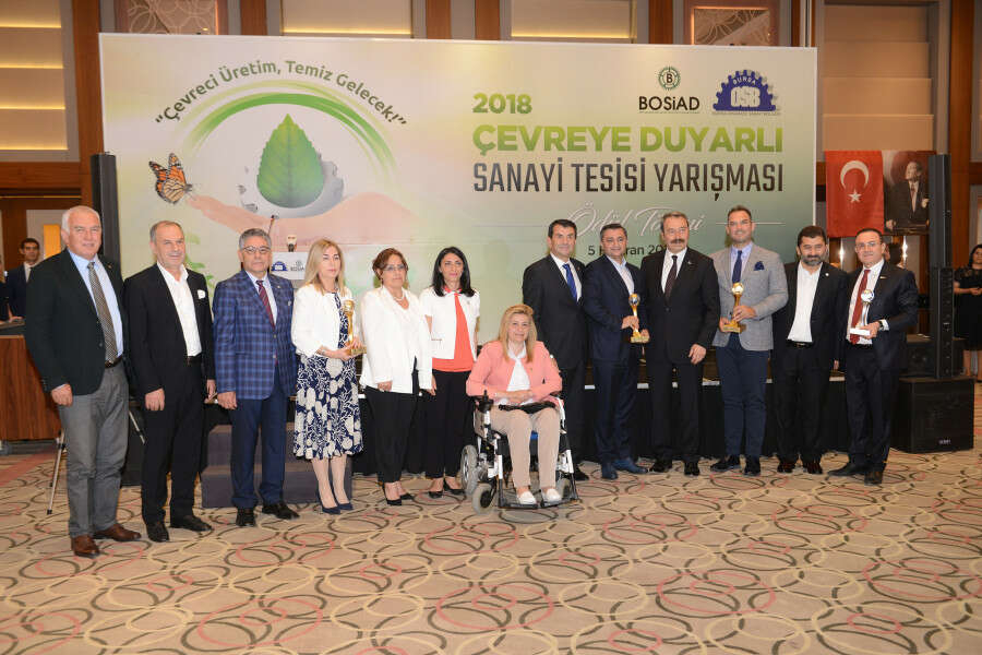5 Haziran Dünya Çevre Günü’nde Sheraton Otel’de gerçekleştirilen ödül törenine; AK Parti Bursa Milletvekili Bennur Karaburun, CHP Bursa Milletvekili Nurhayat Altaca Kayışoğlu, Büyükşehir Belediyesi Başkanvekili Ahmet Yıldız, Bursa Teknik Üniversitesi Rektörü Prof. Dr. Arif Karademir, İl Emniyet Müdürü Osman Ak, BTSO Meclis Başkanı Ali Uğur, BOSİAD Başkanı Abdullah Bayrak, Bursa OSB ve BOSİAD Yönetim Kurulu üyeleri ve sanayiciler katıldı.