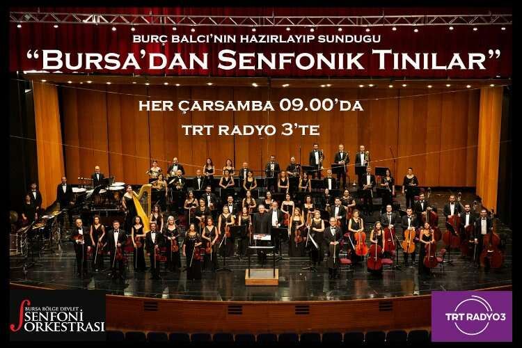 TRT Radyo 3 bildiğiniz gibi klasik müzik ağırlıklı yayın yapan bir kuruluş. Bu radyoda artık her Çarşamba sabahı Bursa’dan da bir yayın bizlerle olacak. “Bursa’dan senfonik tınılar” programı Çarşamba sabahları saat 09.00-09.30 arası TRT Radyo 3’te.
