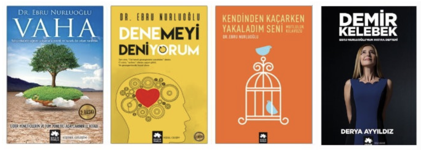 Bu arada Dr. Ebru Nurluoğlu şirketlere yönelik profesyonel uğraşında birçok şirketin rehber olarak kullandığı “Vaha, Denemeyi Deniyorum, Kendinden Kaçarken Yakaladım Seni ve Demir Kelebek” isimli kitapları olduğunu da anımsatıyorum.