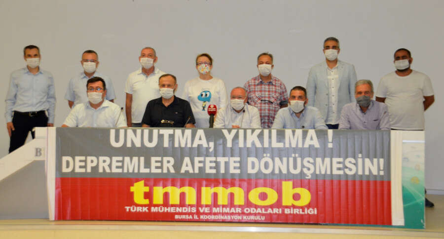 TMMOB Bursa İl Koordinasyon Kurulu 17 Ağustos depremi ile ilgili olarak bir basın açıklaması yaptı. TMMOB Bursa İl Koordinasyon Kurulu Sekreteri Ferudun Tetik şunları söyledi: