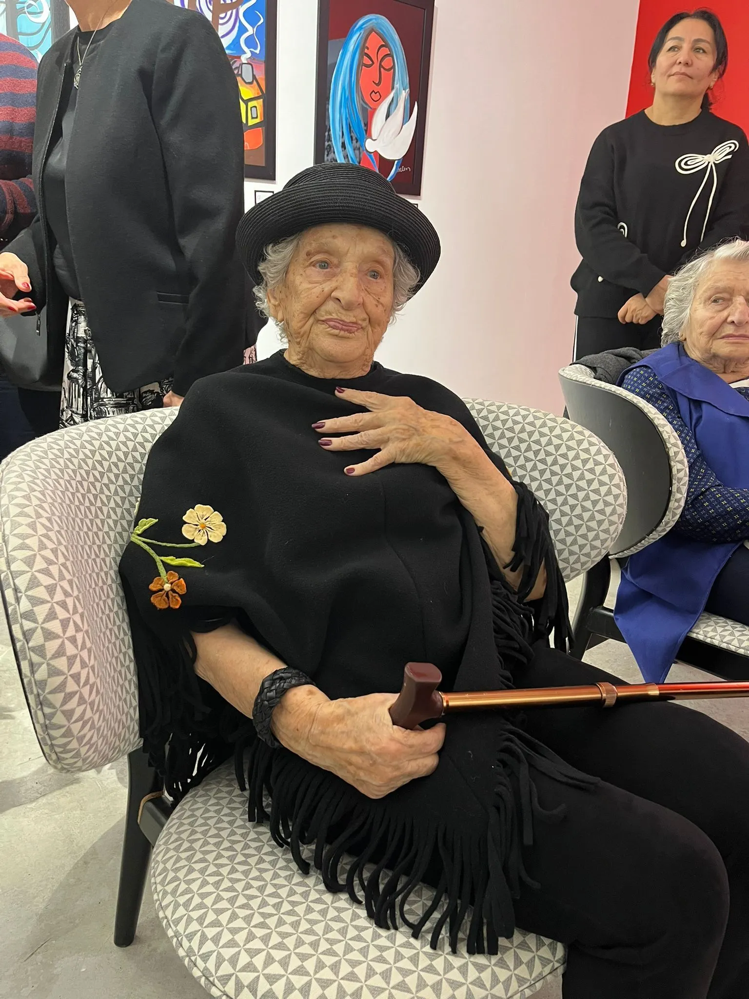 Bu sergiye ÇEK eski yöneticilerinden ve şu anda Eğitim Kurulu üyesi olan Prof. Dr. Füsun Kuter ve kayınvalidem Aynur Öztürk ile katıldık. Kayınvalidem kız öğretmen okulunun ikinci mezunu. Sergide öğretmenini gördü ve elini öptü. Bana da bu anın fotoğrafını çekmek düştü.
