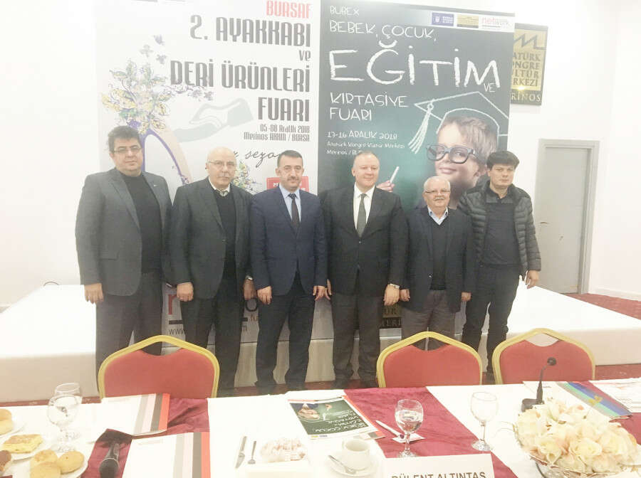 Dün Merinos AKKM Muradiye Salonu’nda düzenlenen toplantıda yeni fuarlar tanıtıldı. Toplantıya Network Fuarcılık Genel Müdürü Hasan Eker, Bursa Ayakkabıcılar Odası Başkanı İbrahim Aytekin, Bursa İl Milli Eğitim Müdür Yardımcısı Bülent Altıntaş, BTSO 33. Komite Başkanı Ramazan Kuneroğlu, BTSO Meclis Üyesi Altuğ Gencer ve Matbaacılar Kırtasiyeciler Odası Başkan Yardımcısı İsmail Akar katıldı.