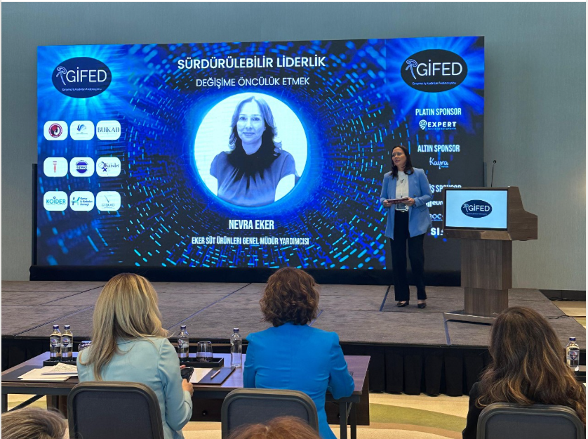 Zirve açılış konuşmalarının ardından ilham veren konuşmalar ile devam etti. Eker Süt Ürünleri Genel Müdür Yardımcısı Nevra Eker, ‘Sürdürülebilir Liderlik: Değişime Öncülük Etmek’ konulu bir konuşma yaptı.