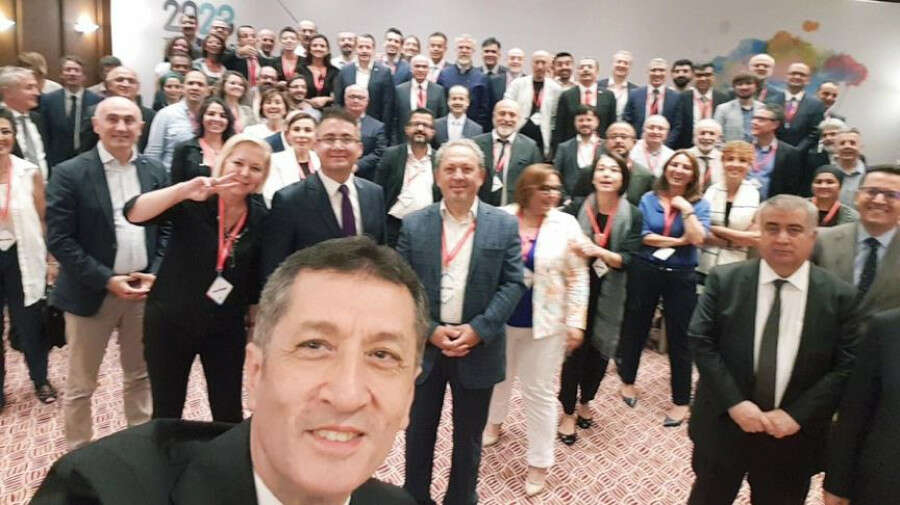 Salonda bulunan katılımcı gruba bir isim verilmesi gerekirse “Bir şey yapma grubu” denilebileceğini söyleyen Bakan Selçuk, sosyal medyadan yaptığı paylaşımda “#Eğitim2023 Hep bir’likte çocuklarımız için özümüzü çektik.” ifadelerini kullanarak, konferanstan özçekim paylaştı.