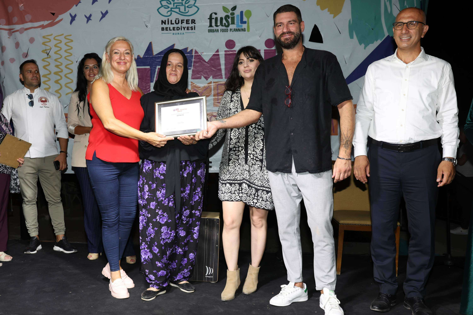 “Nilüfer Belediye Başkan Yardımcısı Dr. Sibel Özer, şef Yağız İzgül, Bursa Aşçılar Derneği Başkan Yardımcısı Sezer Özdemir, Cumhuriyet Gazetesi Gastronomi Yazarı Burçak Şener, Gastroder Başkanı ve gastronomi yazarı Ramazan Başan, blogger Tuğçe Aksulu”