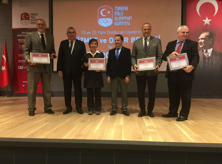 Perşembe akşamı Ataköy’deki Olimpiyatevi’nde TMOK’da 15. ve 25. yıllarını dolduran üyeler altın ve gümüş rozetleri ile beratlarını aldılar. Törene katılanlar arasında eski bakanlardan Kürşat Tüzmen ve de eski Gençlik ve Spor Genel Müdürü Mehmet Atalay da vardı.