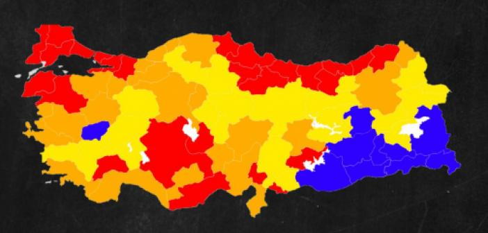 Pandemi dönemi ile yaşantımızda renkler yer almaya başladı. Şimdi artık şehirlerimizin renkleri vardır. Bu seferki tayfımız kırmızı ile mavi arasındadır. Kırmızı-turuncu-sarı ve mavi. Bu renkler pandemi döneminde şehirlerimizin risklerini işaret eder.