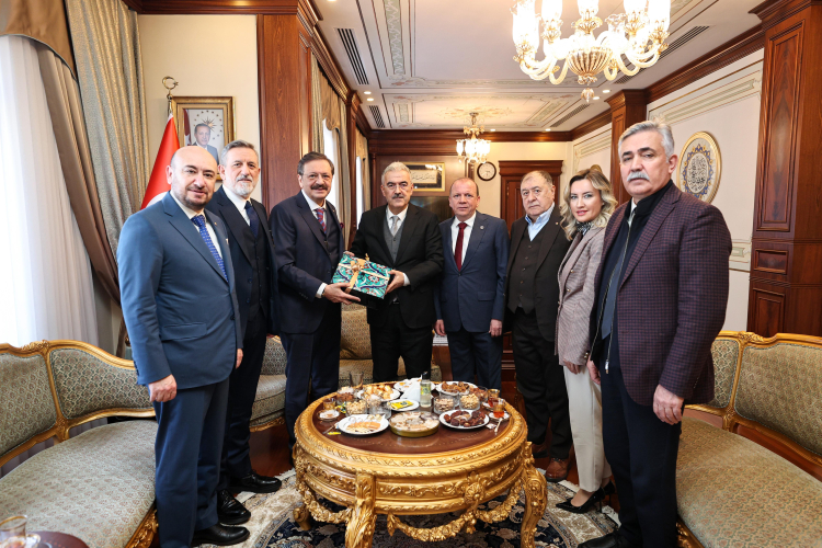 Hisarcıklıoğlu’nun ilk durağı Bursa Valiliği oldu. Rıfat Başkan, BTSO Başkanı İbrahim Burkay ve BTB Başkanı Özer Matlı ile Bursa Valisi Erol Ayyıldız’ı makamında ziyaret etti.