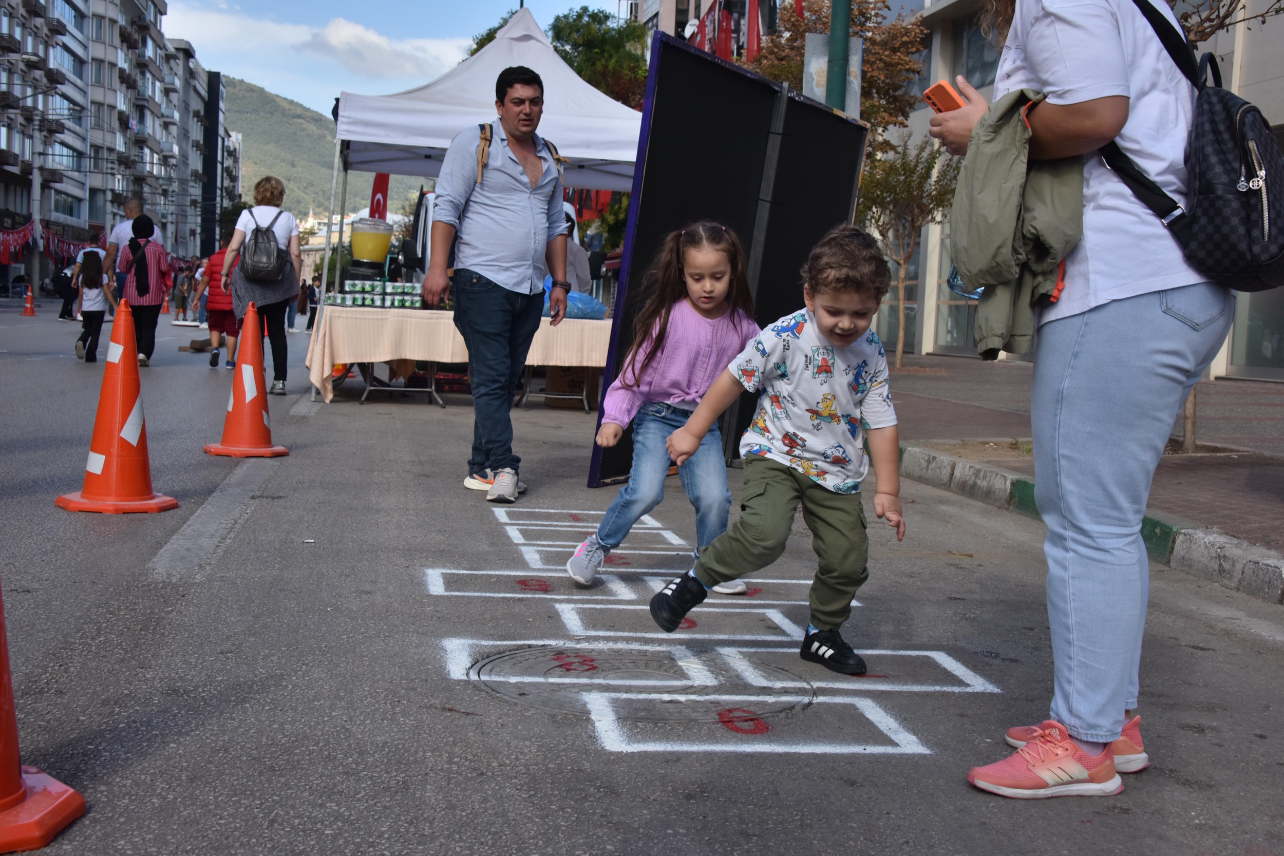 Tophane’den start verilerek ‘Pedallar dönüyor, İyilik büyüyor’ bisiklet etkinliğiyle başlayan program, çocuklara ve yetişkinlere doyasıya eğlenebilecekleri bir gün geçirme fırsatı sundu. Heykel Atatürk Caddesi’nde yapılacak programda, bisiklet ve e-skuter sürüş eğitimlerinin yanı sıra 4 farklı alanda gazoz kapağı, cilli, ip atlama, yakar top, istop, körebe gibi sokak oyunları oynandı. Unutamayacakları bir pazar günü yaşayan çocuklar, mini golf, okçuluk ve denge oyunlarıyla doyasıya gülümsedi. Araba sesleri ile değil, çocuk gülüşleri ile dolan Heykel’de Bursalılar eğlence dolu bir gün geçirdi.