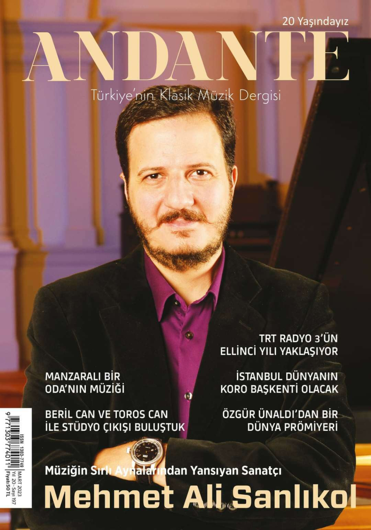 Andante’nin bu ayki Mart 2023 sayısının kapağında kentimizin yetiştirdiği ve Amerika’da New England Conservatory’de hoca olan şef, solist, besteci Mehmet Ali Sanlıkol yer aldı.