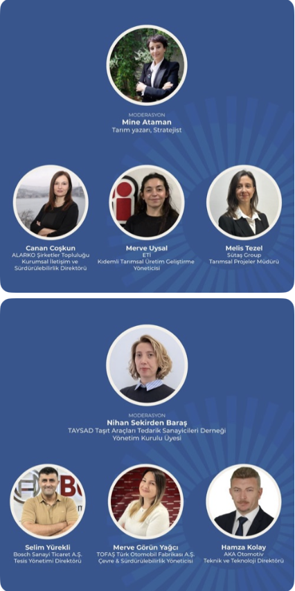 Panelde konuşacak isimler Bosch Sanayi Ticaret A.Ş., Tesis Yönetimi Direktörü Selim Yürekli; TOFAŞ Türk Otomobil Fabrikası A.Ş, Çevre & Sürdürülebilirlik Yöneticisi Merve Görün Yağcı ve AKA Otomotiv, Teknik ve Teknoloji Direktörü Hamza Kolay.
