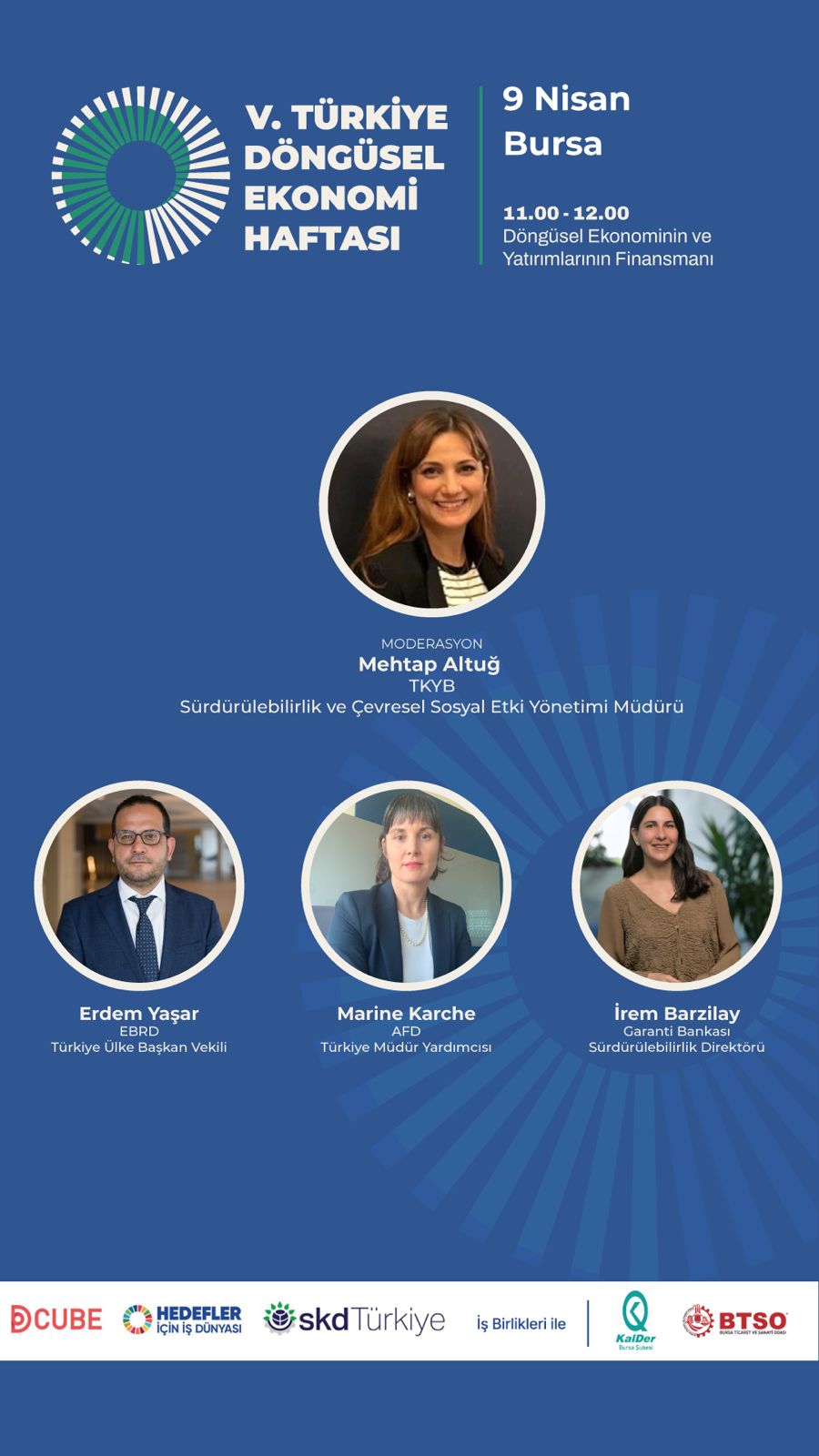 11.00-12.00 arasındaki Döngüsel Ekonominin ve Yatırımlarının Finansmanı panelinin moderatörlüğünü TKYB, Genel Müdür Yardımcısı ve Sürdürülebilirlik ve Etki Lideri Seçil Yıldız yapıyor.