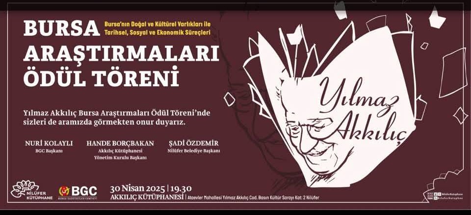 2010 yılından bu yana düzenlenen Yılmaz Akkılıç Bursa Araştırmaları Ödülleri’nin 15’incisinde kazananlar belli oldu. Dr. Feza Örüç başkanlığındaki seçici kurul, 2024 yılında üretilen 32 eseri değerlendirerek sonuçları açıkladı. Seçici kurulda Prof. Dr. Tülin Vural Aslan, Prof. Dr. Alpaslan Türkkan, Doç. Dr. Nilüfer Alkan Günay, Doç. Dr. Elifhan Köse Çal, eğitimci Hande Borçbakan ve gazeteci Hacı Tonak yer aldı.